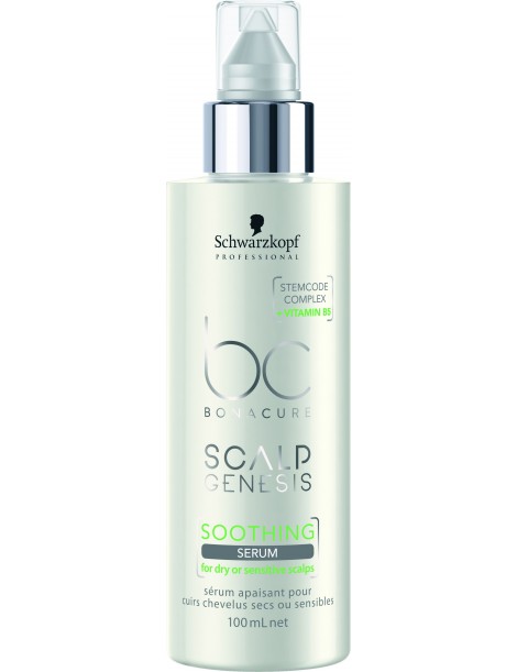 BC Scalp Genesis Sérum Calmante con el Complejo StemCode™ y Vitamina B5 calma y reequilibra el cuero cabelludo sensible con tendencia a irritarse mientras asegura el estado futuro del cabello.